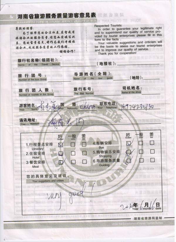 長沙李志彪一行10人旅游質(zhì)量回饋:VERY GOOD!