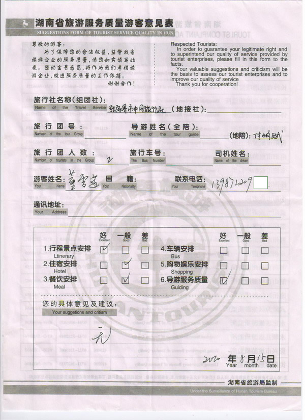 昆明董雪蓮一行2人旅游質(zhì)量回饋