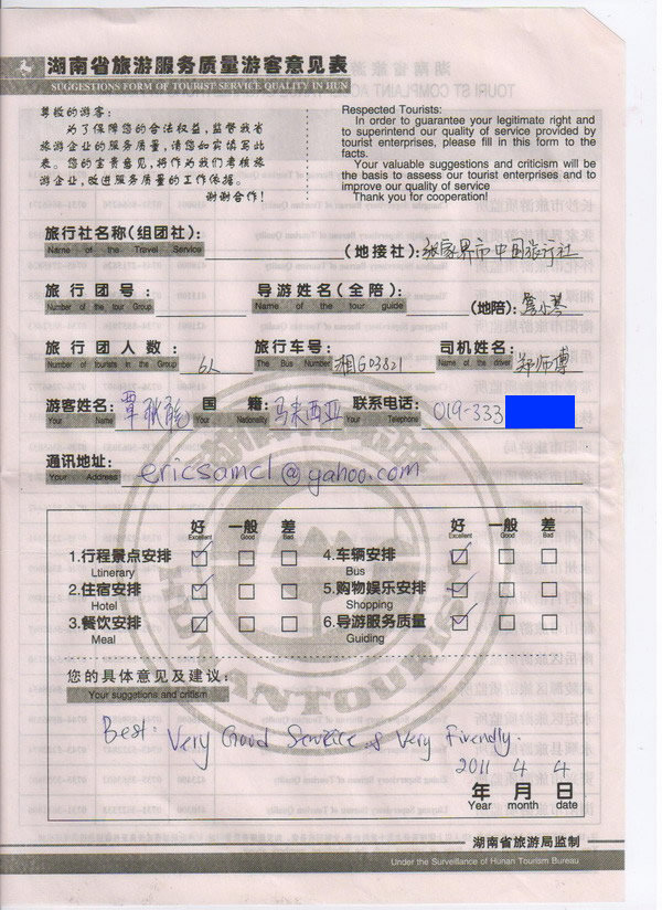 馬來西亞覃先生一行6人旅游質(zhì)量回饋