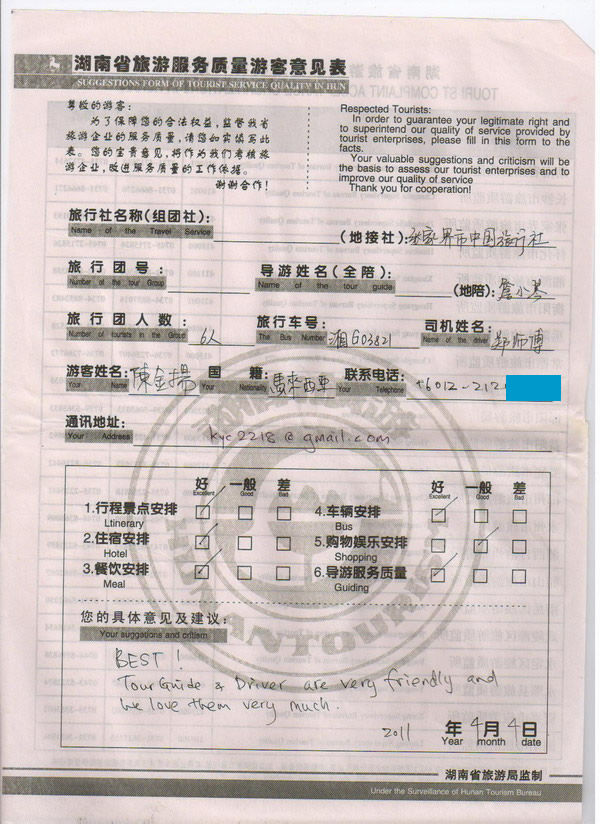 馬來西亞陳先生一行6人旅游質(zhì)量回饋u