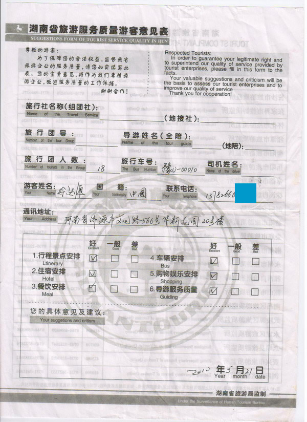 河南徐先生一行18人旅游質(zhì)量回饋