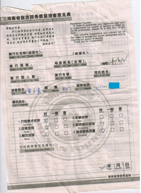 臺灣黃先生一行6人旅游質量回饋