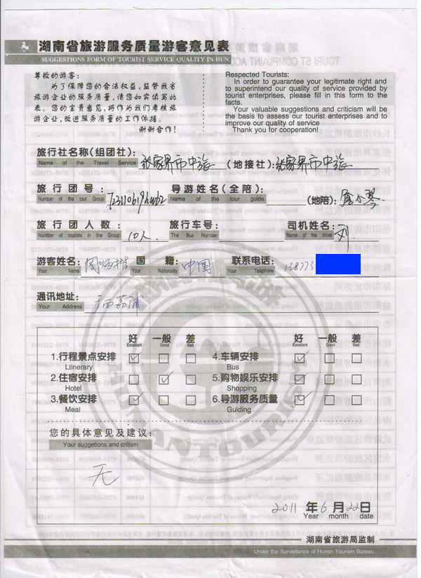 廣西周先生一行10人旅游質(zhì)量回饋