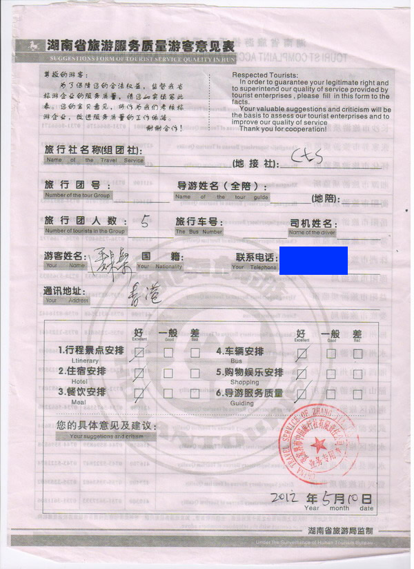 香港潘先生一行5人旅游質(zhì)量回饋