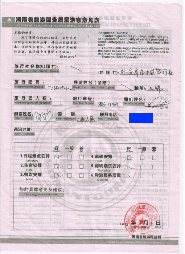 山西張先生一行2人旅游質量回饋