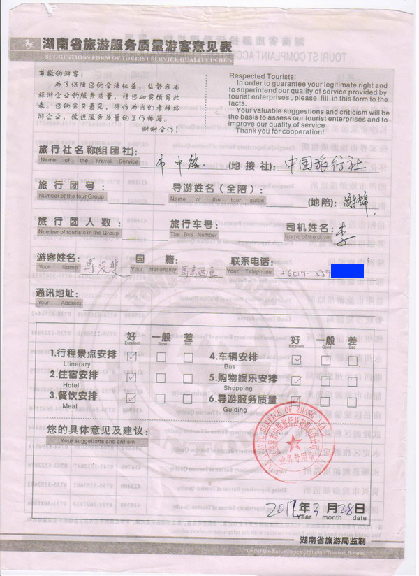 馬來(lái)西亞馬先生一行6人旅游質(zhì)量回饋