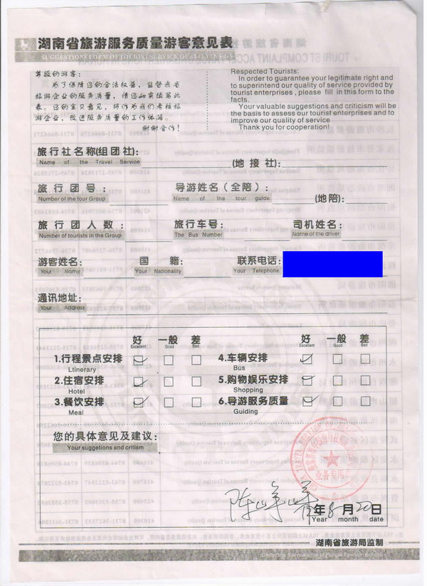 安徽陳先生一行8人旅游質(zhì)量回饋