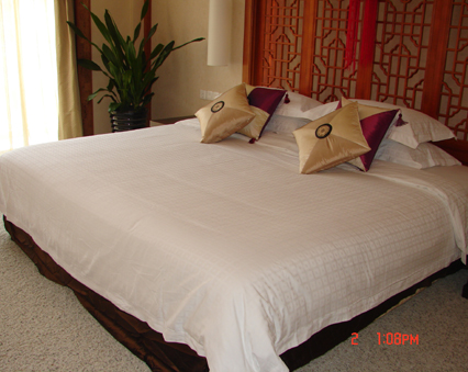 總統(tǒng)套房:面積378平方米,采用復式結構,以其雍容華貴的建筑造型從對稱格局到錯落有致,從豪華的大廳到流動的起居空間,從寬敞的客、餐廳到私密的主臥與書房,所有物品皆是精挑細選的精品,盡顯帝王之風,坐擁君臨天下之勢。