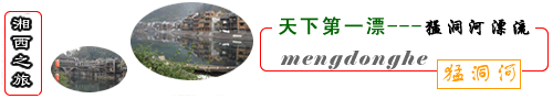 [猛洞河漂流]位于猛洞河支流司河,全長(zhǎng)47公里,最精彩處位于哈妮宮至牛路河段,長(zhǎng)約17公里。該景區(qū)兩岸多為原始次森林,蔥蔥郁郁,水流湍急,碧綠清亮,有十里絕壁,十里瀑泉,十里畫(huà)卷,十里洞天的美譽(yù)。其中有急流險(xiǎn)灘108處,大小瀑布20處。漂流,穿急流,越險(xiǎn)灘,闖狹谷,捕激浪,有驚無(wú)險(xiǎn),回味無(wú)窮。特別是哈妮宮、三角巖、雞籠門(mén)、遇仙峽(捏土)、閻王灘、落水坑、夢(mèng)思峽、鯉魚(yú)剖肚、三大炮等景點(diǎn),無(wú)不令人叫絕觀止。國(guó)家旅游局長(zhǎng)劉毅漂后贊道:全國(guó)獨(dú)有”。全國(guó)人大常委會(huì)副委員長(zhǎng)費(fèi)孝通漂后題詞:“天下第一漂”。香港著名攝影藝術(shù)家陳復(fù)禮先生漂后贊揚(yáng):“真正的漂流,不是在菲律賓,而在中國(guó)湖南猛洞河”,并題詞:“尋幽、探勝、刺激、舒(抒)情兼而有之,猛洞河漂流游,行將揚(yáng)名天下”。 2002年2月,“天下第一漂”獲得湖南省著名商標(biāo),這是我國(guó)旅游服務(wù)行業(yè)唯一的著名商標(biāo)。