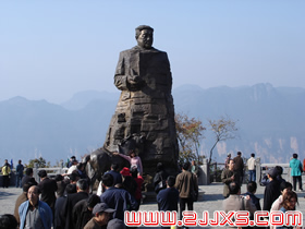 賀龍?jiān)獛浭侵腥A人民共和國的開國元?jiǎng),人民解放軍的締造者之一。他就出生在天子山西邊桑植縣洪家關(guān)的一個(gè)農(nóng)民家庭,從兩把菜刀砍鹽局首義起,一生充滿傳奇色彩,元帥家鄉(xiāng)流傳著無數(shù)關(guān)于他的故事與傳說。天子山一帶,曾經(jīng)是賀龍、任弼時(shí)、肖克、王震等將軍打過游擊的地方。一回,賀龍?jiān)阼尮乃幻駡F(tuán)包圍了,當(dāng)?shù)乩习傩占敝猩,把賀龍卷在斗墊里,躲過了殺身之禍。這個(gè)故事至今還在這一帶流傳。 |