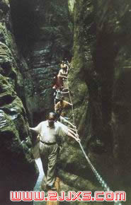 余米,最窄處僅容一人通過(guò)。從峽谷兩側(cè)山頂下至峽底,森林茂密,古藤纏繞,令人贊嘆;而峭壁坡陡路險(xiǎn),崎嶇難行。因峽深壁陡,林蔭蔽日,谷中很多地方終年難見天日。盛夏至此,亦覺寒氣襲人。