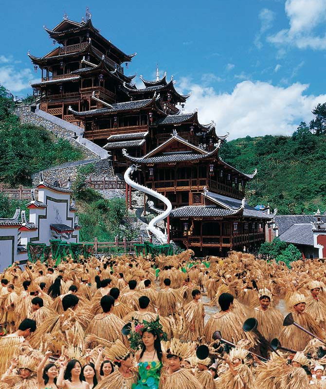 張家界土司城,南倚天門(mén),北靠澧水,永定第末代土司覃純一被朝廷封為世襲千總后建造,距今近三百年歷史,是西南地區(qū)唯一保存完好的古城。土司城占地120多畝,集吊腳樓群,走馬轉(zhuǎn)角樓群為一體,是土家族古代文明的發(fā)祥地和凝聚地。城內(nèi)遺存著大量的珍貴文物,素有“南方紫禁城”之稱。2002年建筑奇觀“九重天吊腳樓”和“千人茅古斯”一并載入世界吉尼斯紀(jì)錄。2003年被列入了國(guó)家AAAA級(jí)景區(qū)、張家界旅游精品線路。是來(lái)張家界考察的國(guó)家領(lǐng)導(dǎo)人和藝術(shù)界人士的必到之處。很多專家學(xué)者參觀土司城后紛紛感慨“不到土司城、不懂土家人”。